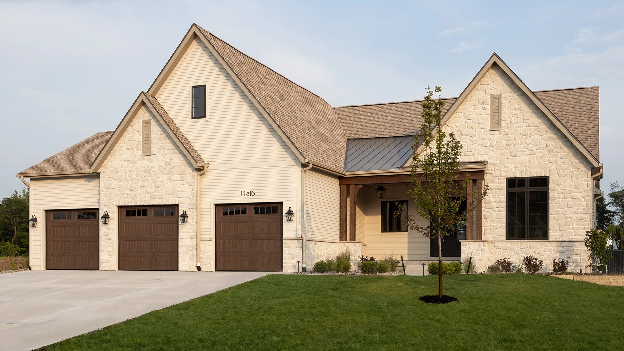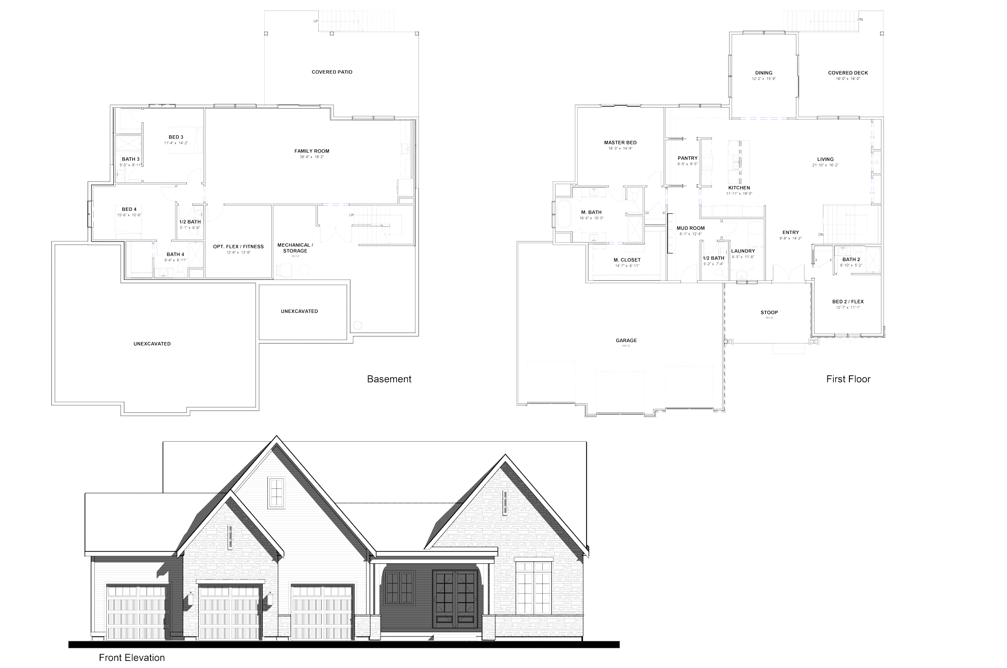 The Tiburon is the perfect reverse 1.5 story ranch plan with a European Farmhouse twist. With an extended kitchen designed for entertaining, flex room, and master suite on the main level. The Lower Level also has two additional bedrooms with ensuite baths, a large family room, gym, and large wet bar.